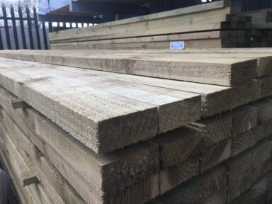 A 38mm x 88mm, pressure treated softwood rail for ‘post and rail’ fencing applications. Approx 1.5′ x 3.5′ and 12′ to 16′ A widely used alternative to bevelled rails for featheredge fencing.