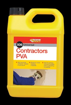 Contractors PVA is a multi-purpose primer, sealer, cement and plaster admixture that adheres to most common building and DIY materials. Ideal for priming and dust sealing on flaking surfaces and as an adhesive on wood, cork etc.